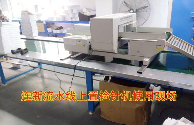 厚街某鞋厂使用连新牌流水线上置输送式检针机使用现场,该检针机可直接放在流水线上使用,不需要破坏现有的生产线,不而外占用地点来拜访该检针机,流水线检针机的横跨度可调节,检针精度高。欢迎上门考察!