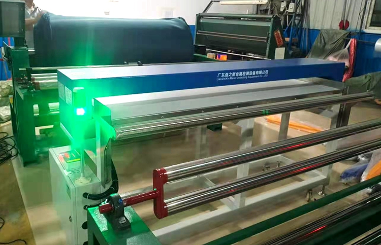 厚毛料鞋材检针机使用要求能检测厚度超过5厘米的毛料,要求全方位检测1.0mm铁,检测到金属后报警输出停机信号,控制验布卷布机停止,并且以灯位指示形式通知工人金属异物所在位置,让工人及时查找到金属异物。