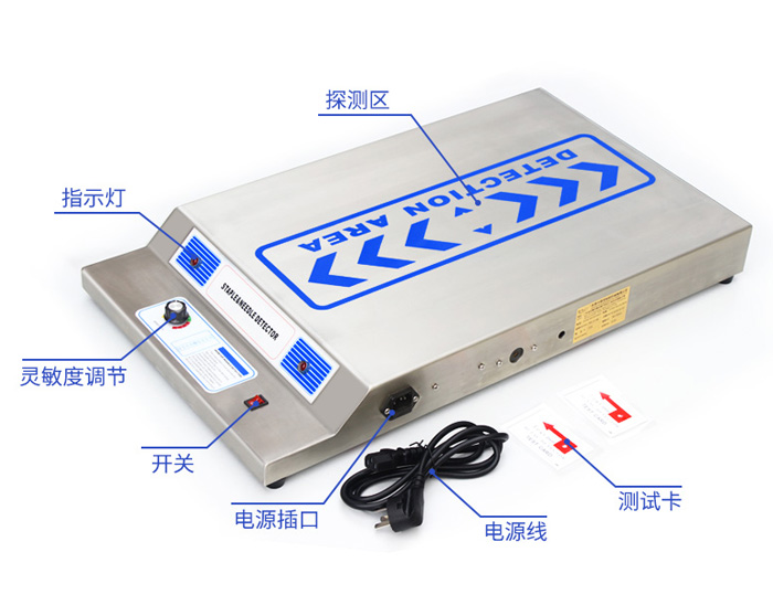 用于检查服饰配件如五金钮扣、拉链、珠链、扣类等五金辅料是否含有铁磁性不可过检针物质(含有铁磁性物质可导致安装此辅料的服装等产品无法过检针)。