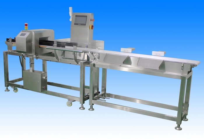 4、将重量或金属残留的不合格产品自动剔除。(金属检测和重量检测一体机)