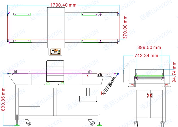 7.检测到金属异物,输送带前端部分下沉分流排除异常产品!