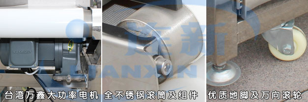 ■ 整机机架采用足3厘镜面不锈钢材料,传送带采用食品级白色PVC或PU皮带,采用激光切割焊接技术,日本品牌轴承及6厘厚无缝钢管滚筒,采用日本三星同步带及同步轮制作,德资JSCC品牌电机;