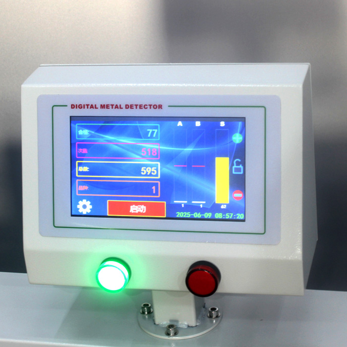 4、检测到金属异物,龙门上对应灯亮,指示金属异物大致所在位置